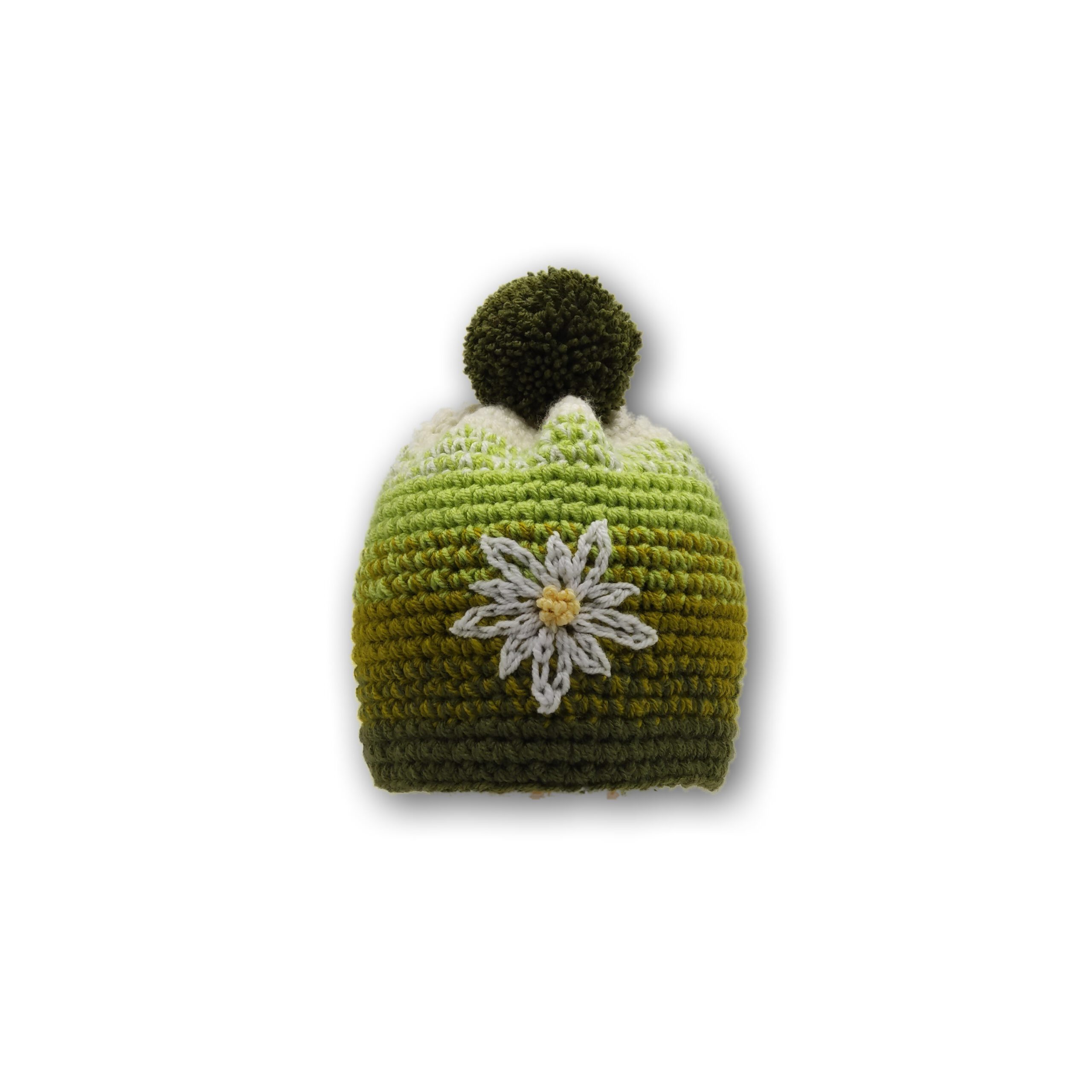 Jede Mütze ist handgehäkelt und bestickt und daher ein Unikat.