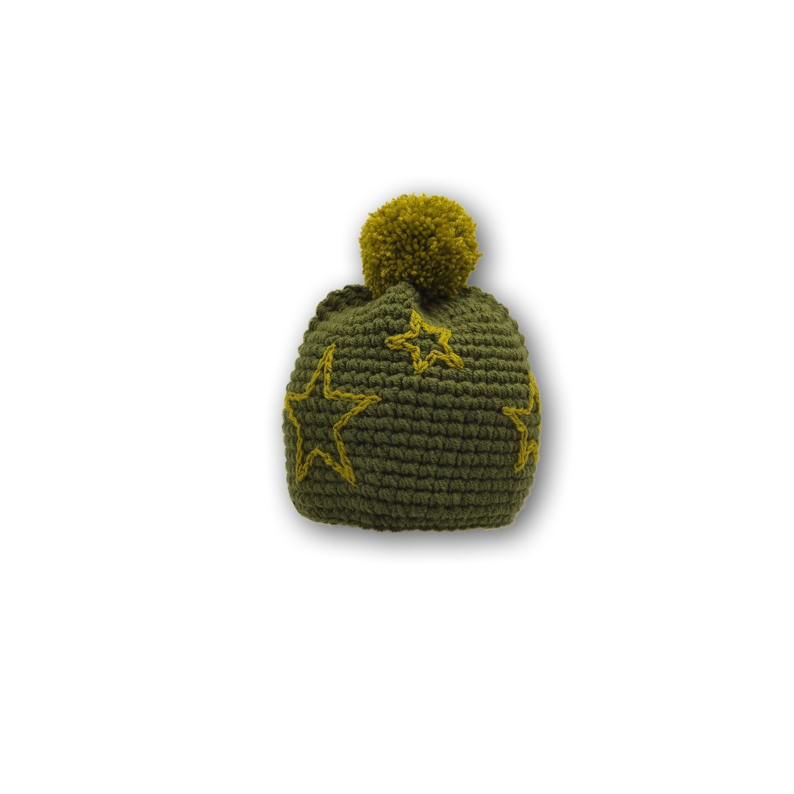Jede Mütze ist handgehäkelt und bestickt und daher ein Unikat.
